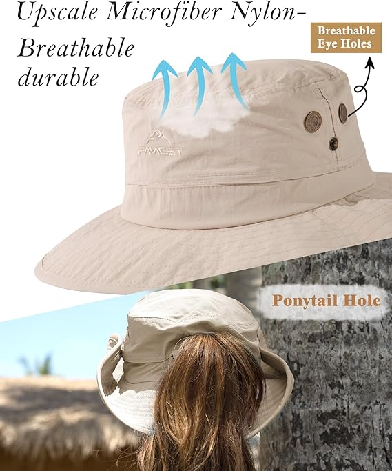 • Lightweight & Packable: This foldable and windproof bucket hat is easy to pack for travel, hiking, safari, and beach trips. The breathable mesh crown enhances airflow, keeping you cool during outdoor adventures.