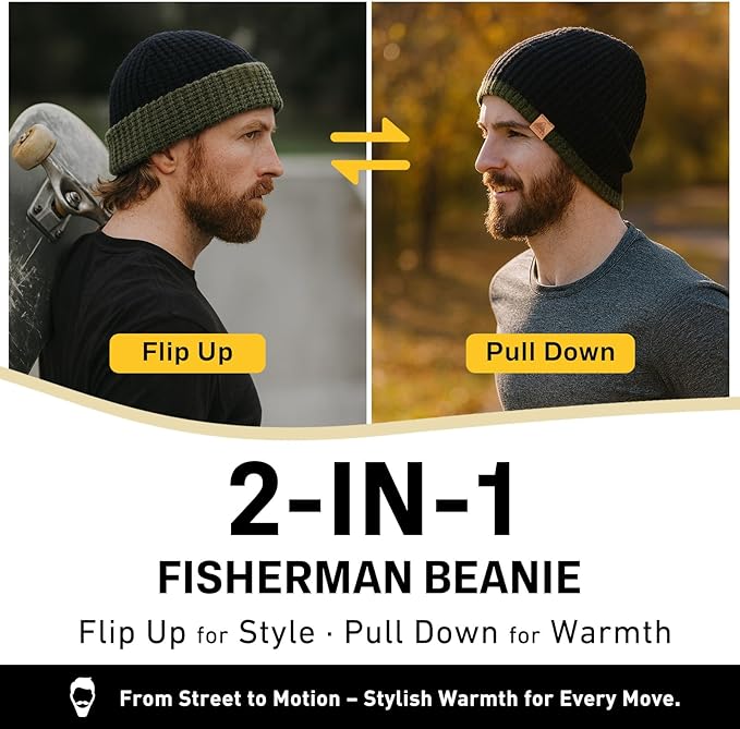 2-in-1 Wear – Fold as a fisherman beanie or unfold for full ear coverage.