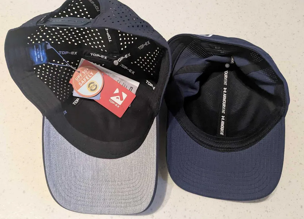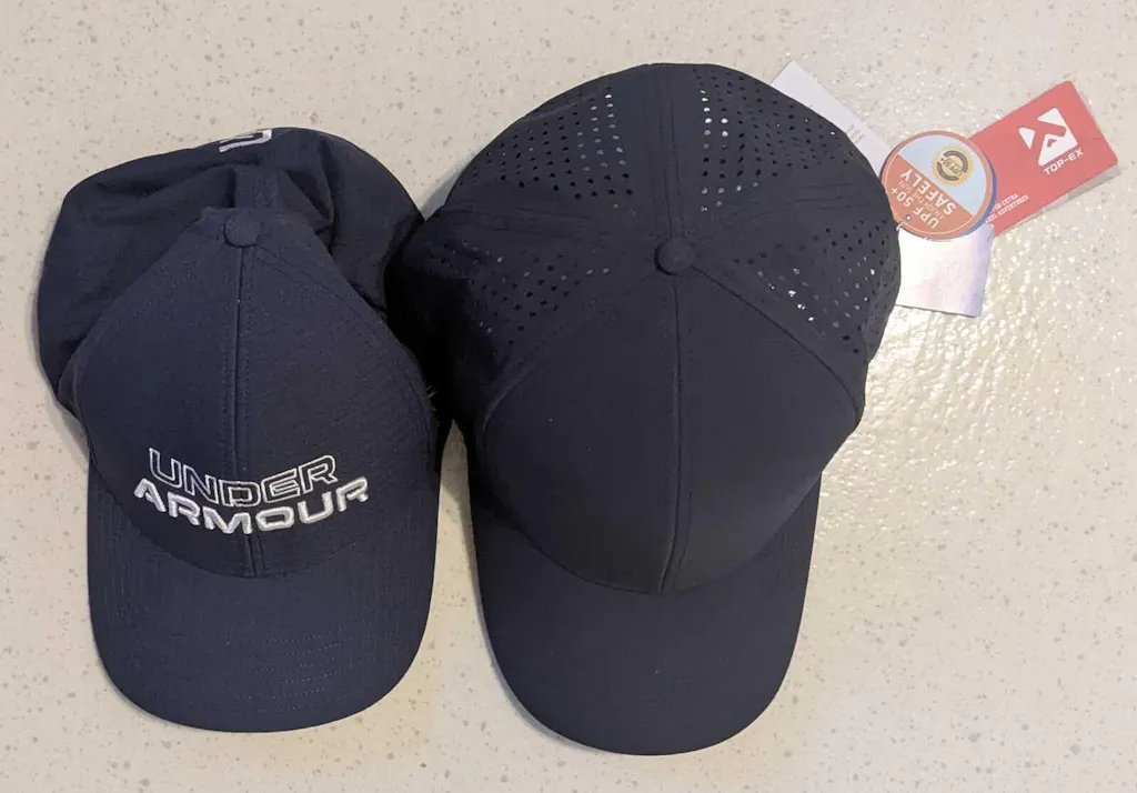This is the second type of hat like this I have used. This is very water resistant. I am still amazed at how a hat can have holes in it, yet still keep a majority of the moisture off of your head. After my water test video, the inner “sweatband” was wet. As this was an extreme water test, I would expect the band to retain some moisture. The “sweatband” on the inside drys quickly and offers another cooling aspect on non-rainy days. Regardless if you are wearing on the course or at another outdoor activity, if there is rain in the forecast, take this hat along with an umbrella and you should literally have your head covered to minimize rain impact on your outdoor activity.