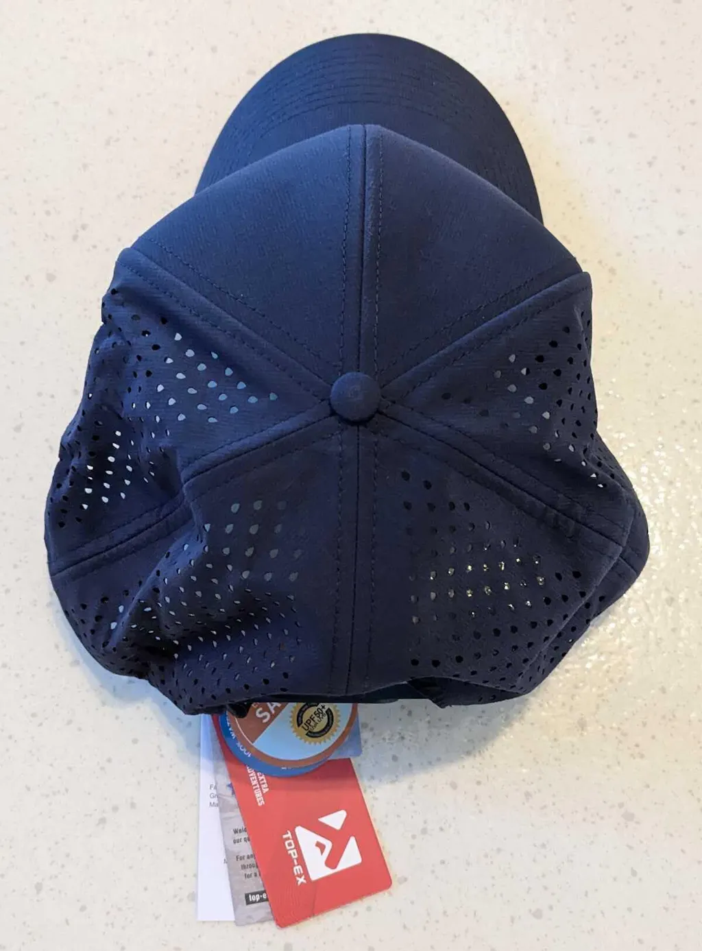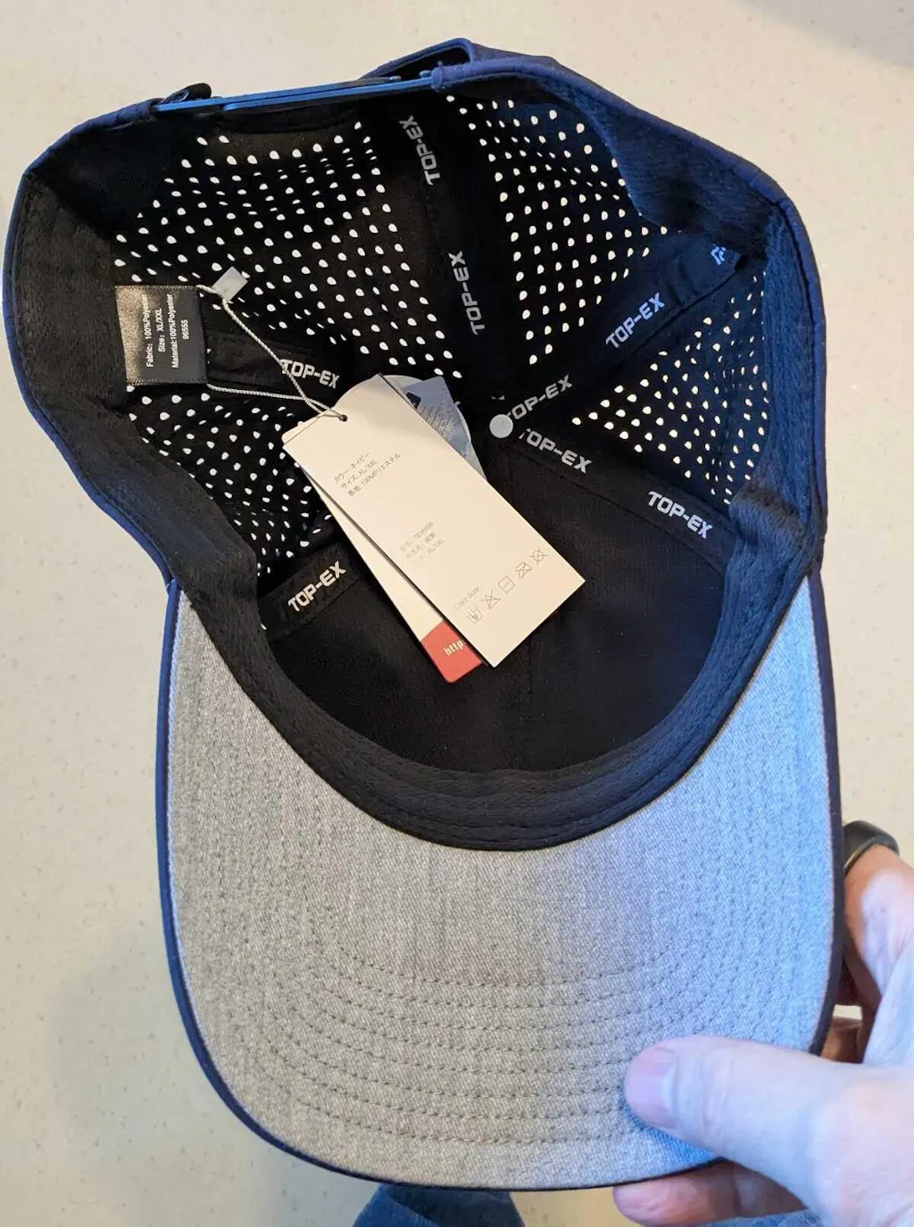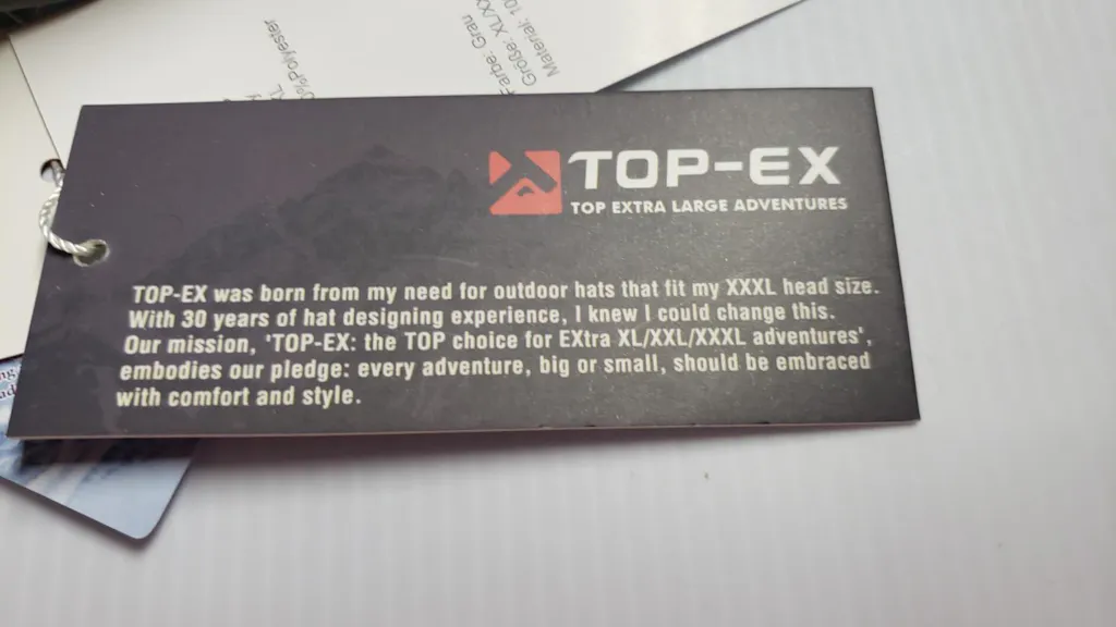Hat is fantastic material and construction. Very solid feel to hat and adjusting strap. It will be my motorcycle riding hat this year. I wear a 7 5/8" hat, or a 5x motorcycle helmet. The hat fits me like a child wearing a standard cap, puckered up in back. Almost as small as it can go on the strap. I believe I ordered an XL, one of the very few items from TOP-EX that runs oversized.